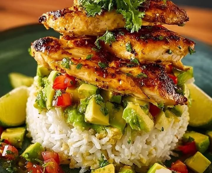 Einfaches Honig-Limetten-Hühnchen mit Avocado-Reis-Stack — gesund & hausgemacht Zutaten: