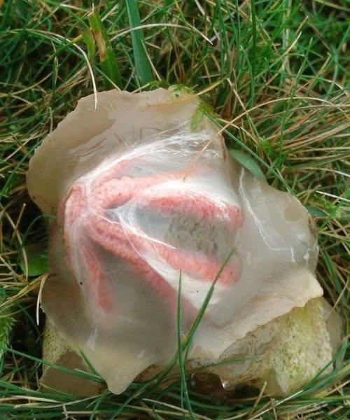 Das Leben des Stinkmorchels beginnt mit einem Stadium, das selbst erfahrene Sammler vor ein Rätsel stellt: das „Hexenei“. Diese runde, gummiartige Struktur liegt teilweise im Boden oder Gras vergraben und ähnelt einer geheimnisvollen biologischen Kapsel. Schneidet man sie auf, offenbart sich ein gallertartiges Inneres und eine gefaltete Struktur, aus der später der reife Pilz entsteht. Viele beschreiben dieses Stadium als das Aussehen eines außerirdischen Embryos oder einer Szene aus einem Science-Fiction-Film, und das ist leicht nachzuvollziehen.